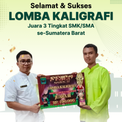Siswa SMK Negeri 1 Sintuk Toboh Gadang, Ahmad Zaki, berhasil meraih Juara 3 Lomba Kaligrafi Tingkat SMK/SMA se-Sumatera Barat. Prestasi